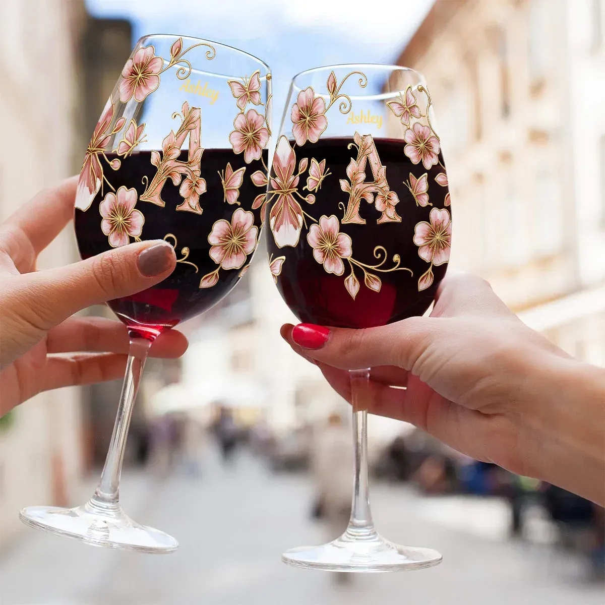 Custom Initial For Wine Lovers - Personalized Wine Wine Glass With Long Stem