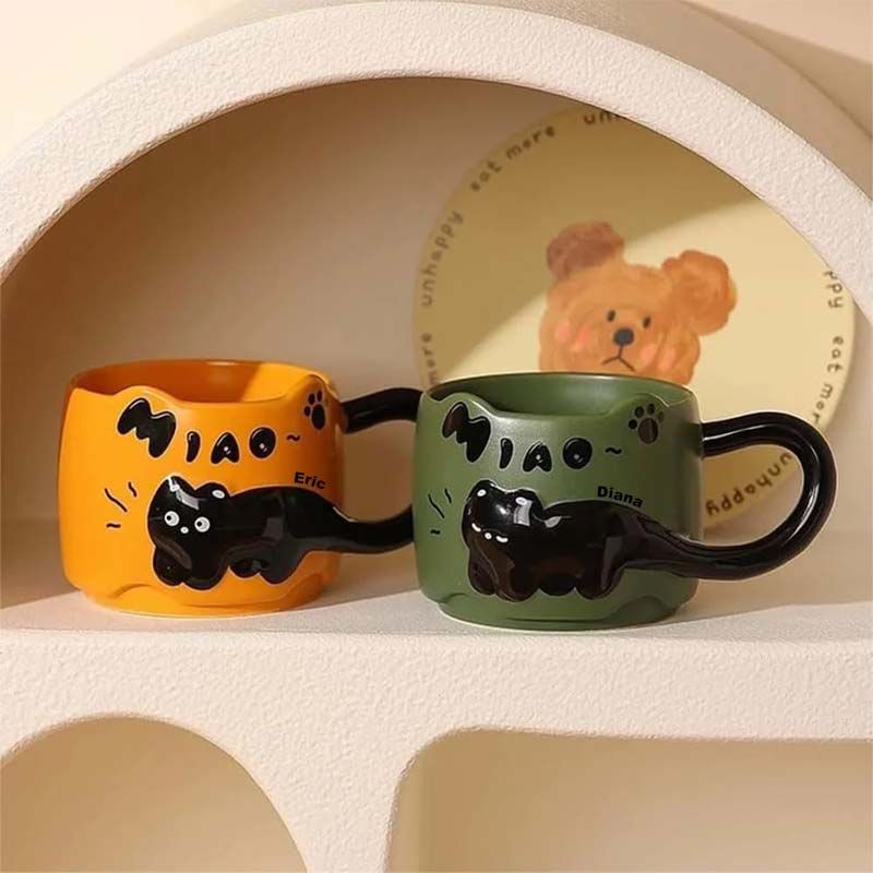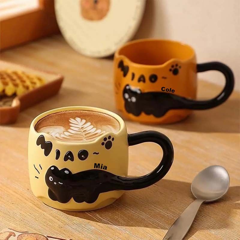 Cute cat coffee cup - name can be customized