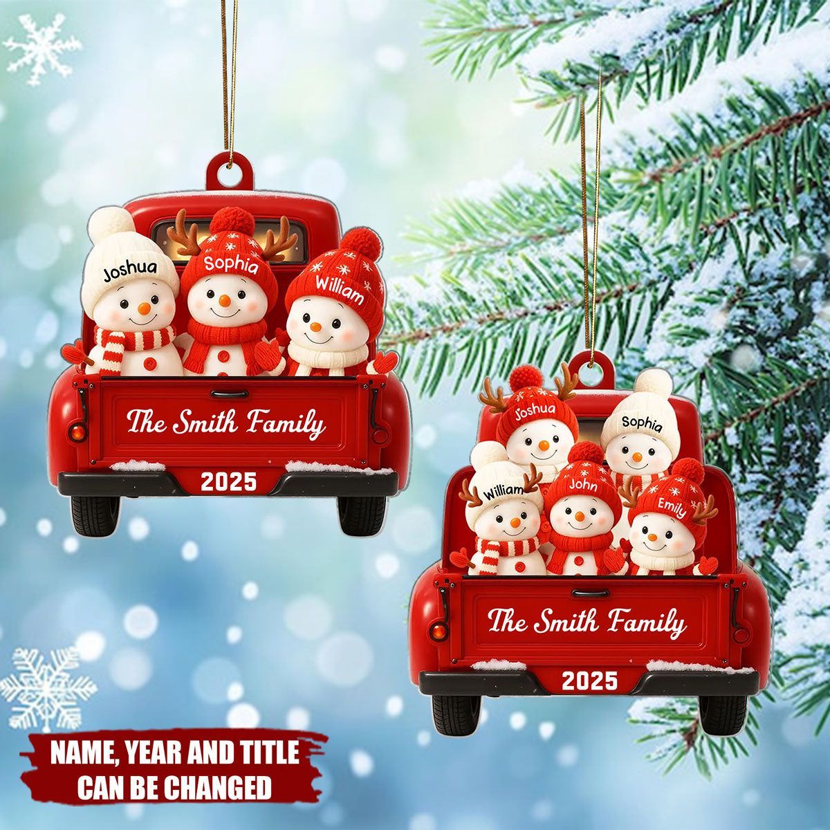 Family Snowman on Christmas Truck - Personalized Christmas Acrylic Ornament