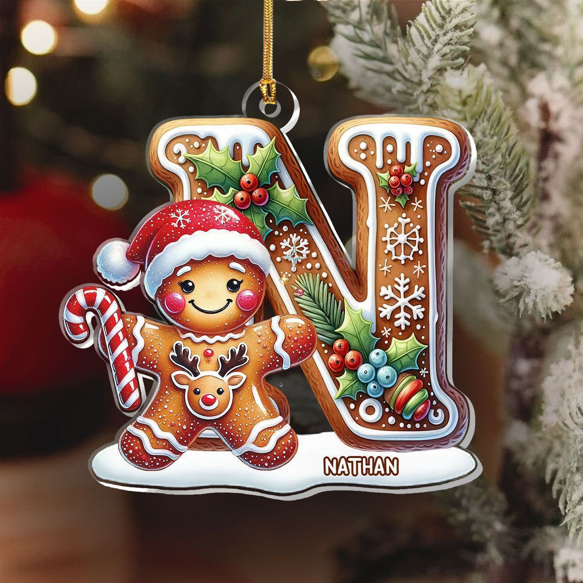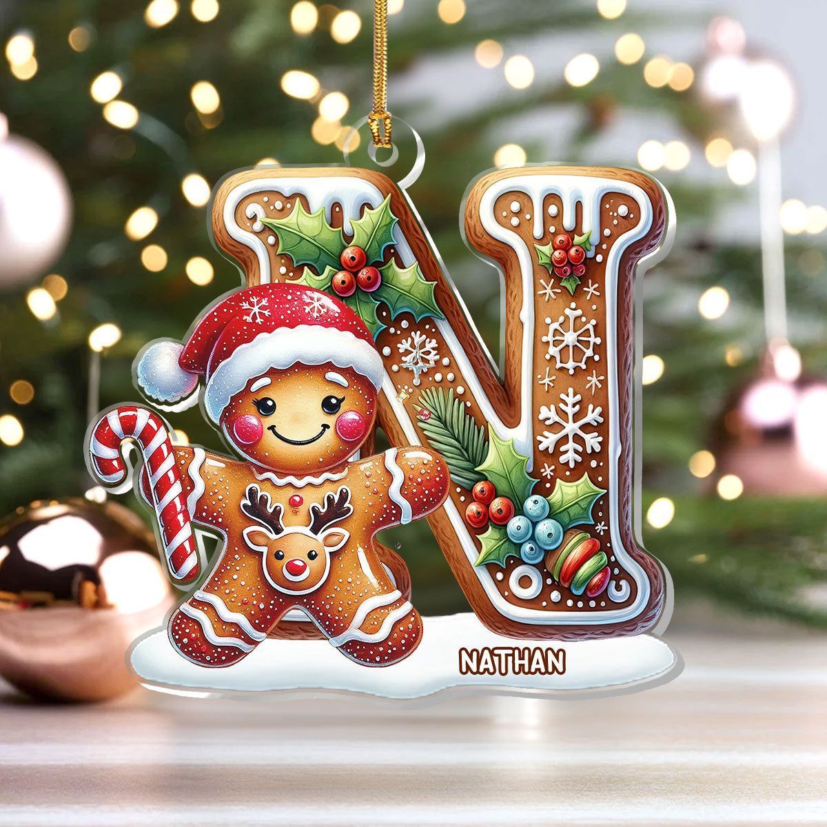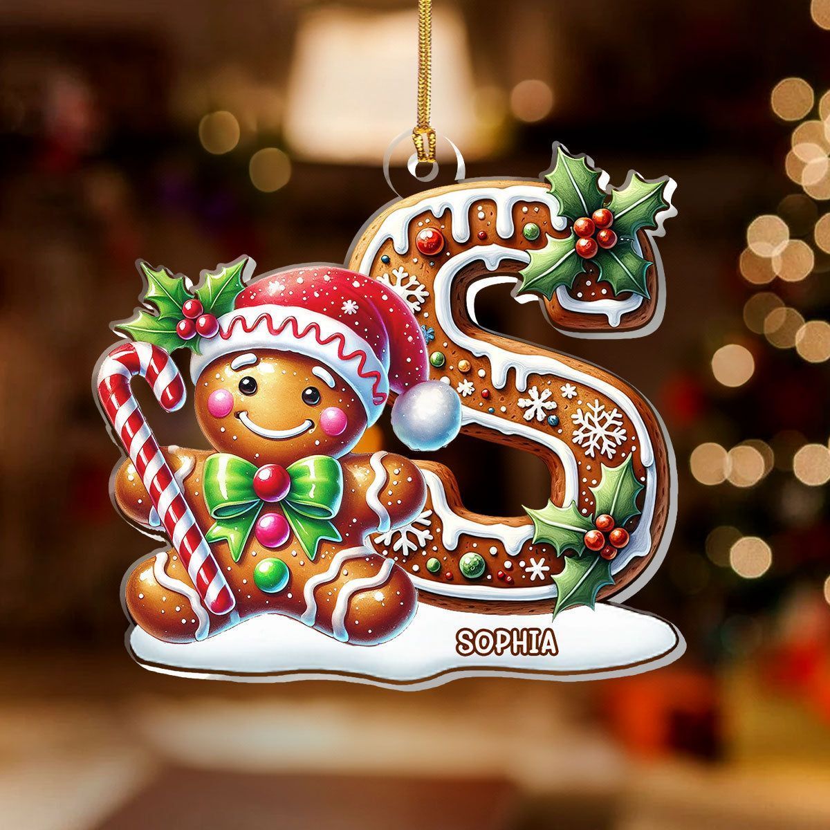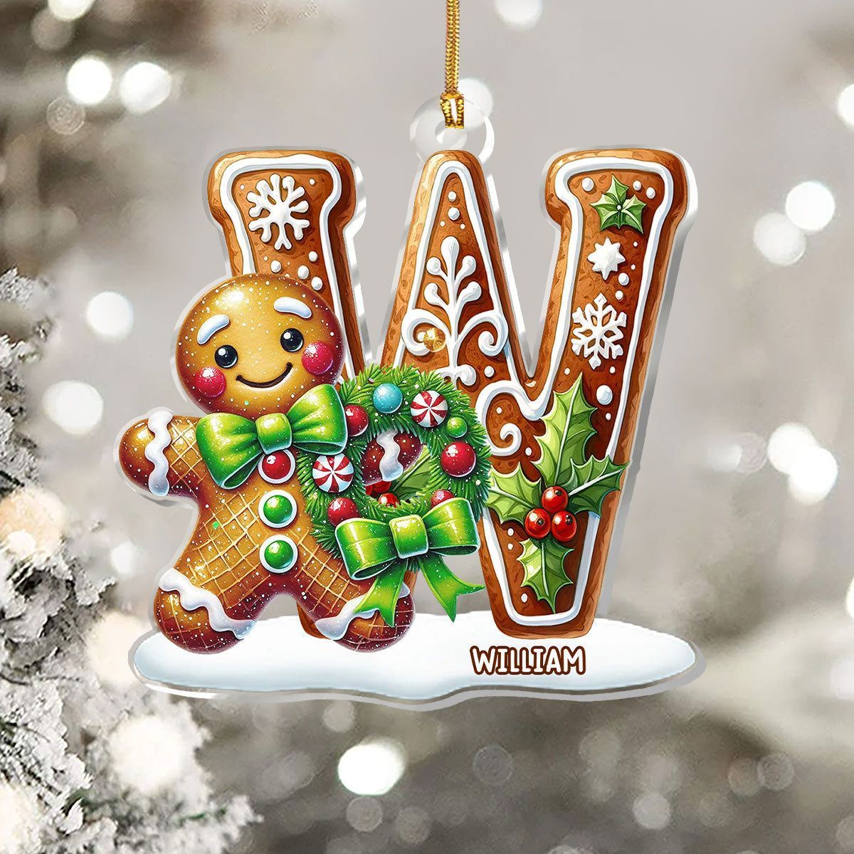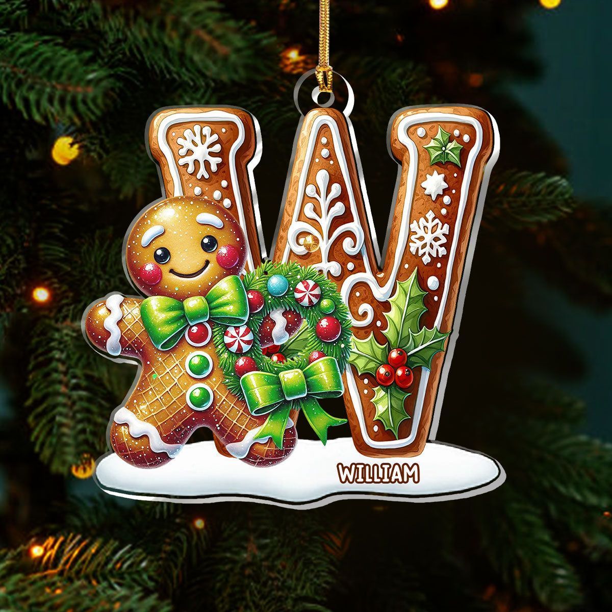 Gingerbread Man Alphabet - Personalized 1-Layer Acrylic Ornament