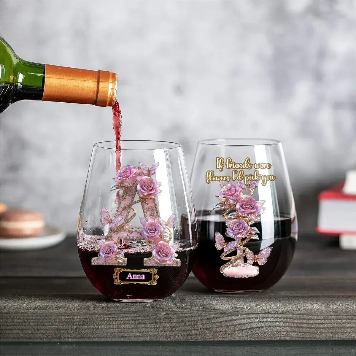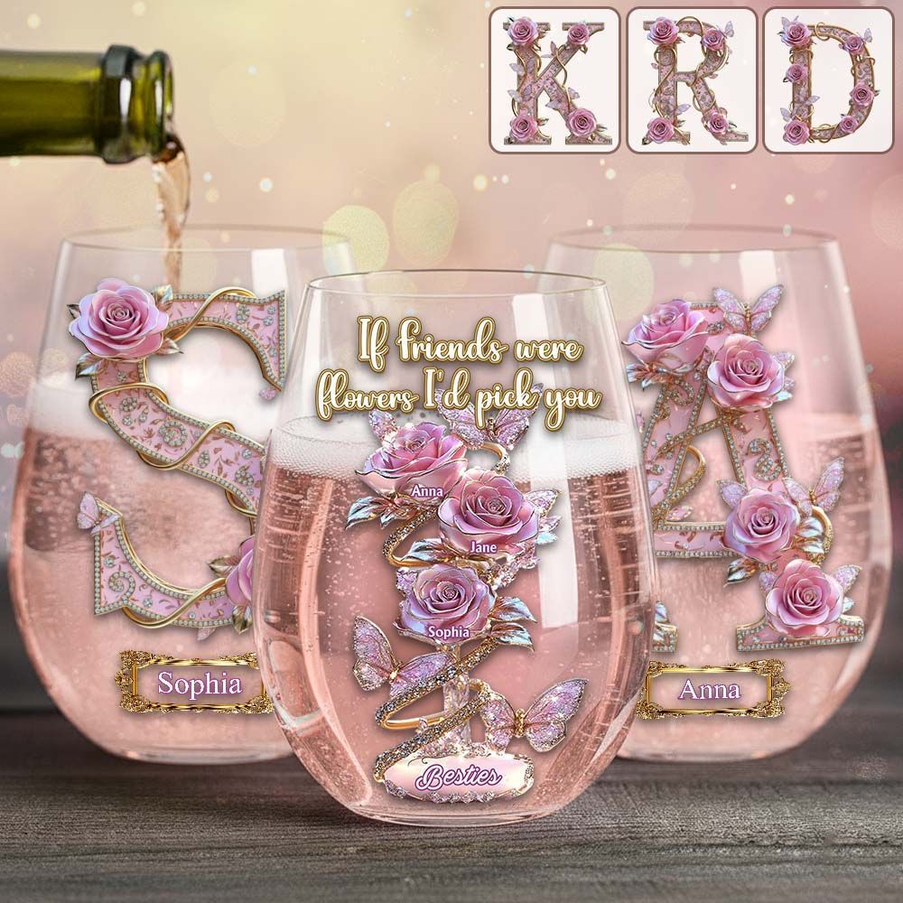 If Friends Were Flowers, I'd Pick You - Personalized Bestie All Over Wine Glass