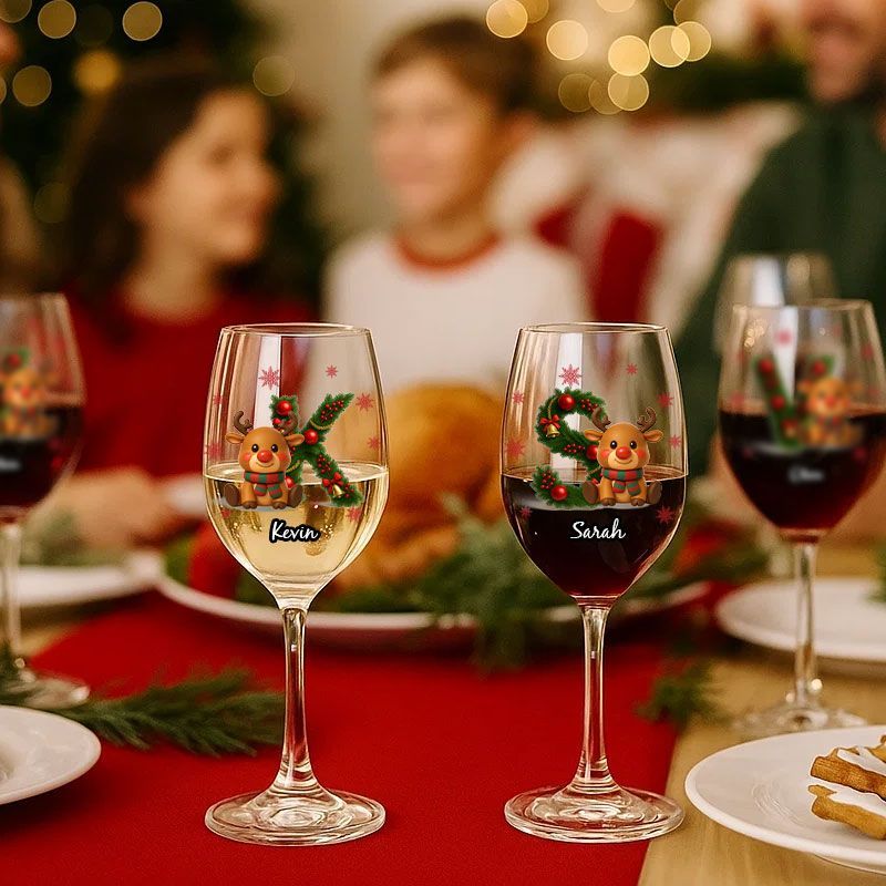 Merry Christmas - Personalised Elk Family Wine Glass
