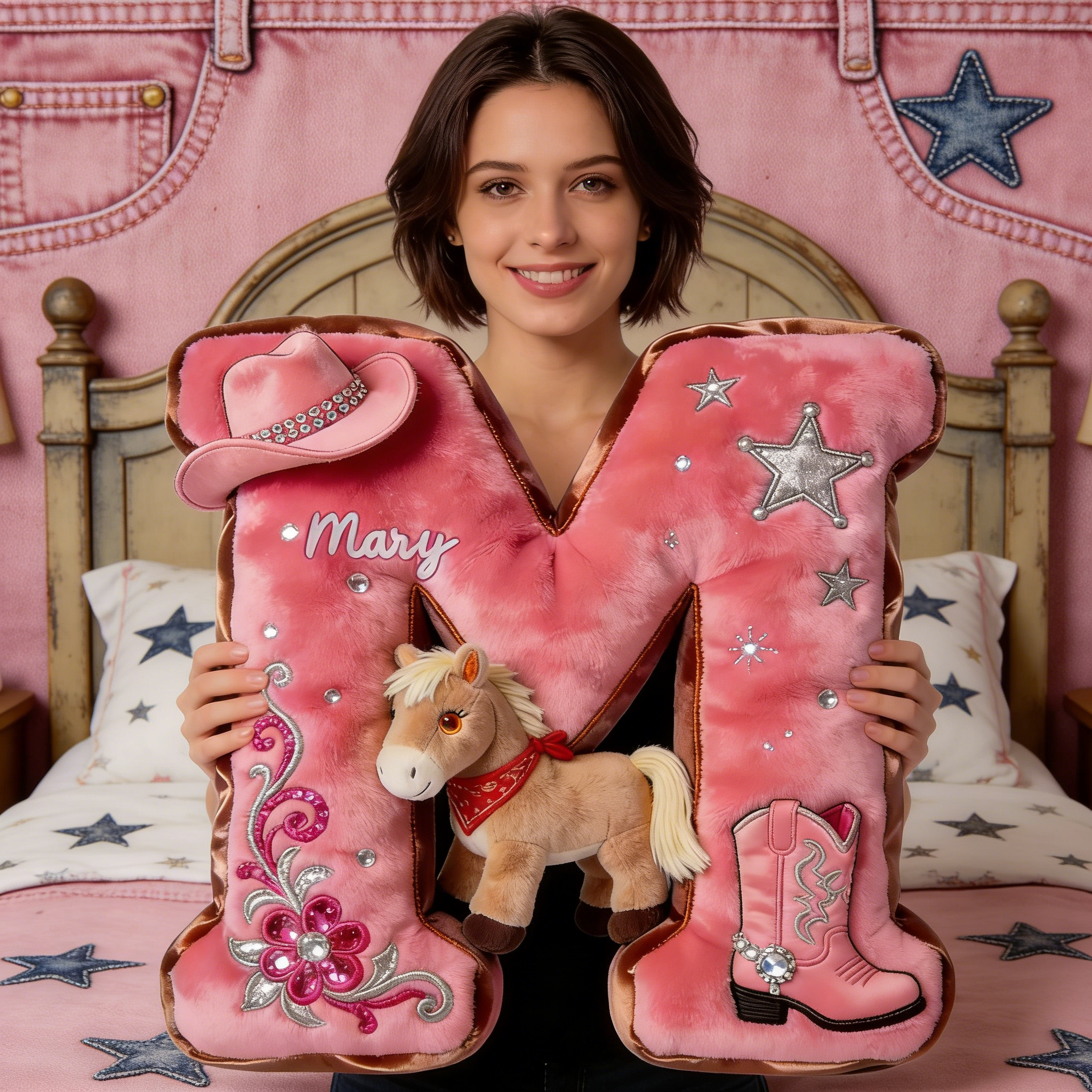 Cowgirl Alphabet Initial Letter Pillow - Personalized Gifts For Horse Lovers